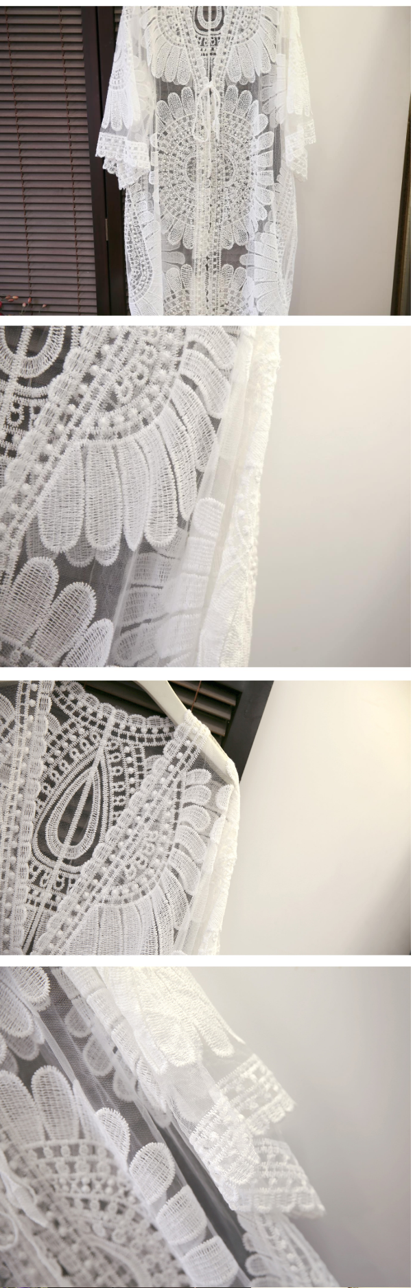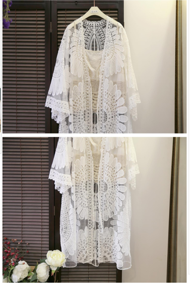 熱推蕾絲繡花開衫外搭比基尼罩衫沙灘外套(白色)(均碼)