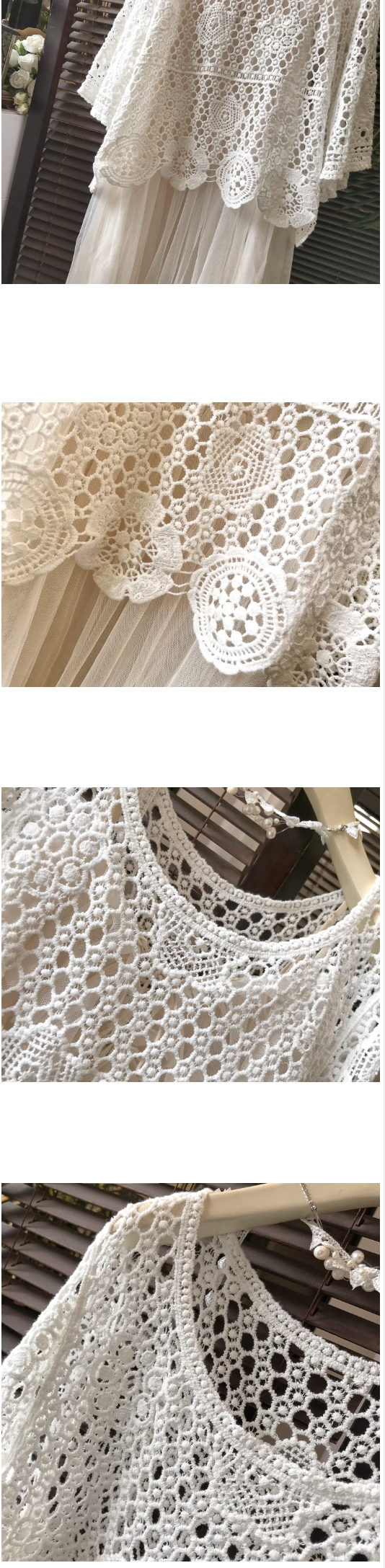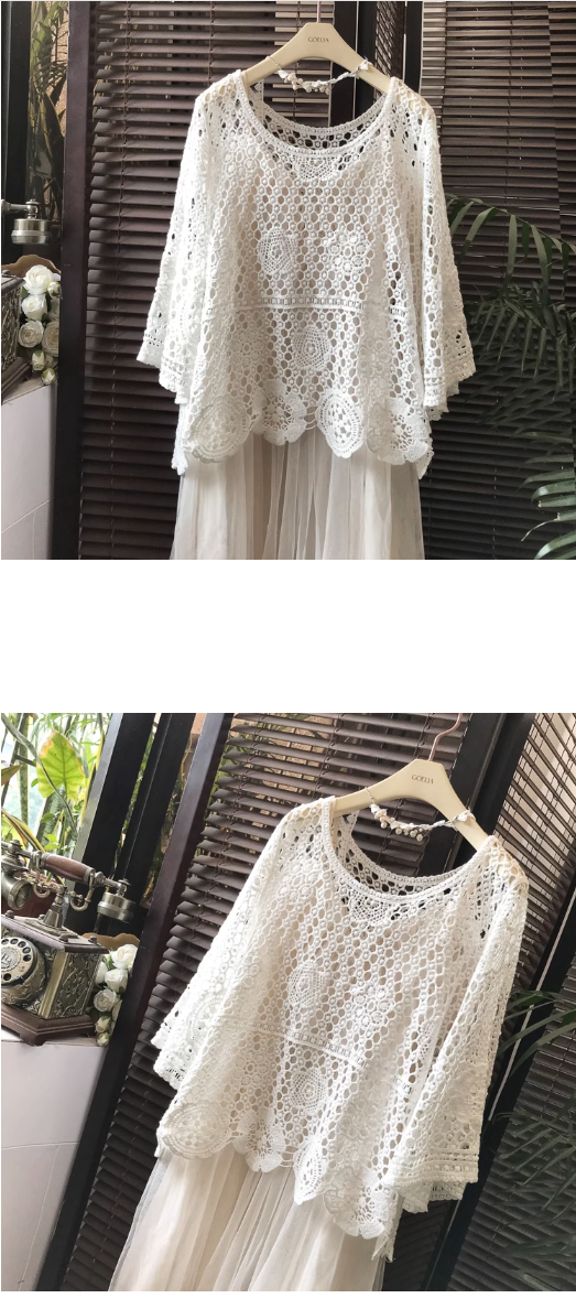 熱推蕾絲長袖鏤空網衫刺繡披肩防曬衣(白色)(均碼)