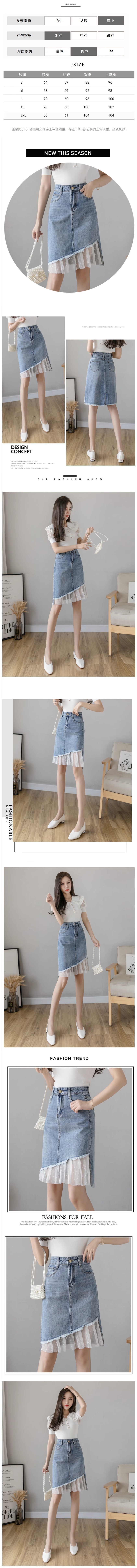 新款蕾絲拼接不規則牛仔半身裙(藍色)(碼數:S/M/L/XL/2XL)(下單後聯絡客服確認尺碼)