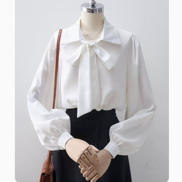 新款系帶蝴蝶結襯衫(白色 尺碼:S-3XL)(下單後請聯絡客服確認發貨尺碼)