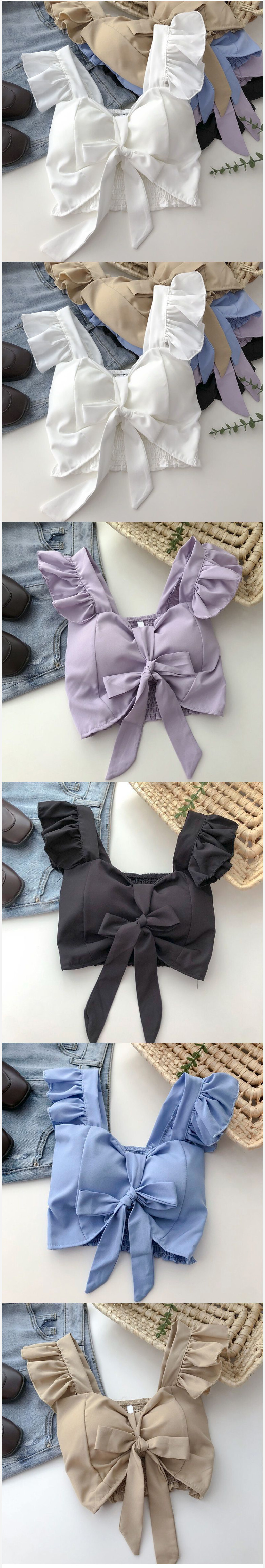 系帶蝴蝶結上衣帶胸墊小飛袖短款外穿吊帶