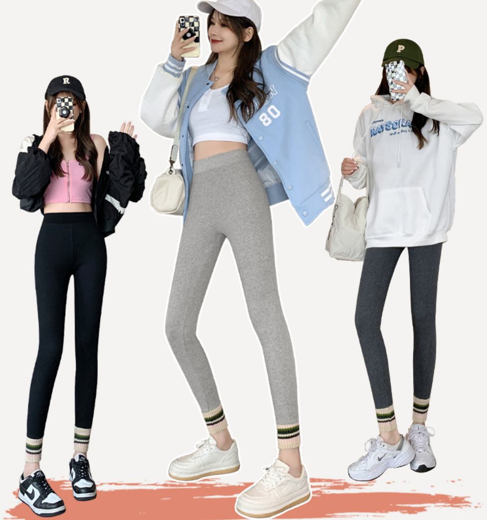 熱推羊羔絨腳口拼接修身螺紋打底褲(深灰色)(尺碼:L【80-125磅】/XL【125-160磅】)(下單後聯絡客服確認發貨尺碼)