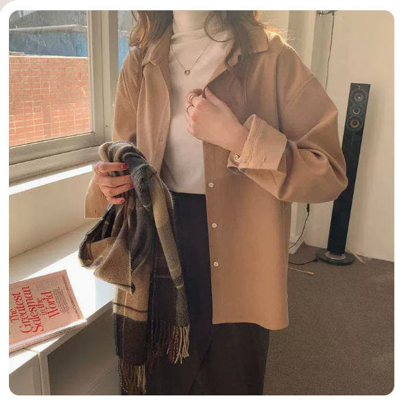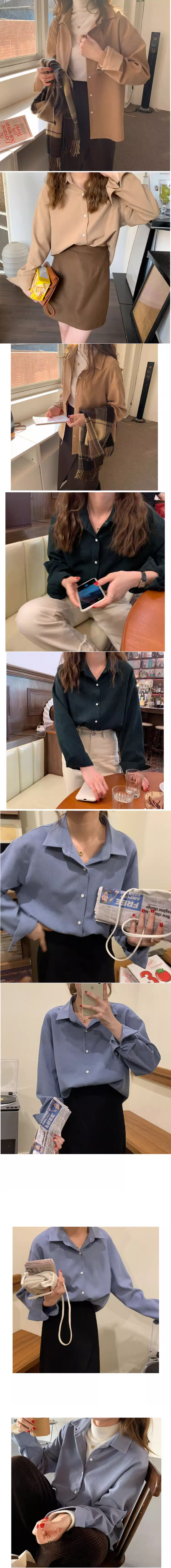 新款翻領單排扣寬松燈芯絨襯衫(卡其色 尺碼:S-3XL)(下單後請聯絡客服確認發貨尺碼)