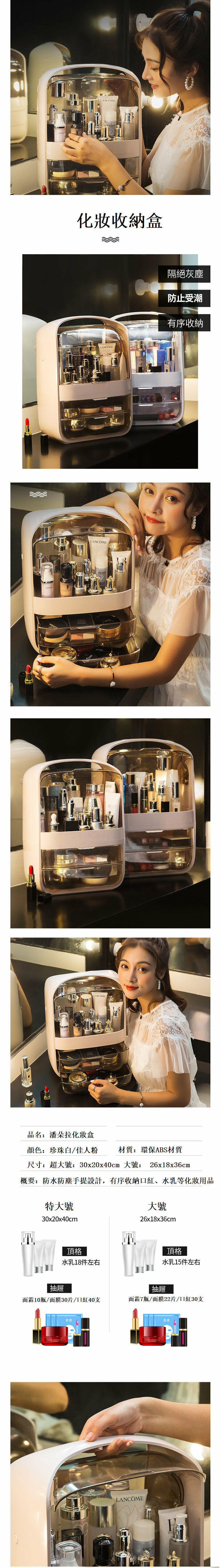 爆款大容量化妝收納盒 防塵家用護膚品置物架 - 潘朵拉特大號水晶白(30*20*40cm)