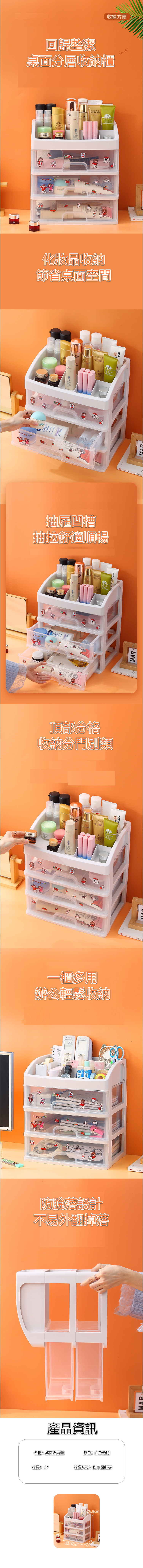 熱賣大容量透明抽屜收納盒化妝品護膚品桌面收納架(小號3層透明) 23.3x17x26.8cm