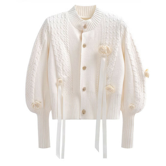 慵懶風復古外套女裝氣質立體玫瑰花朵針織衫毛衣