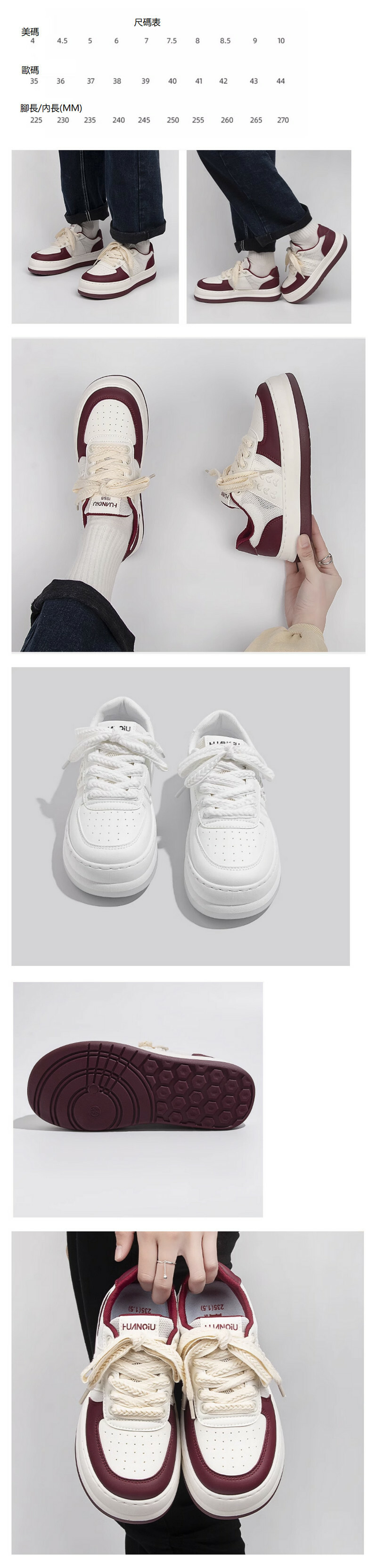 爆款皮面透氣麥穗板鞋女鞋(米色)(尺碼:35-40)(下單後聯絡客服確認發貨尺碼)