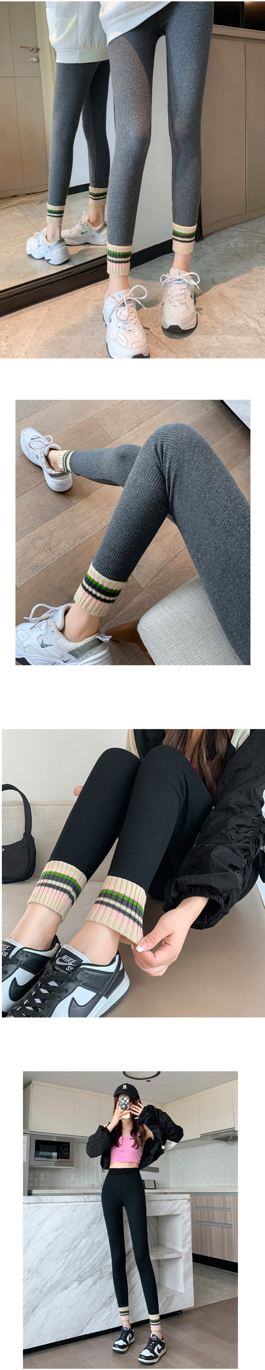 爆款腳口拼接修身螺紋打底褲(深灰)(尺碼:L【80-125磅】/XL【125-160磅】)(下單後聯絡客服確認發貨尺碼)