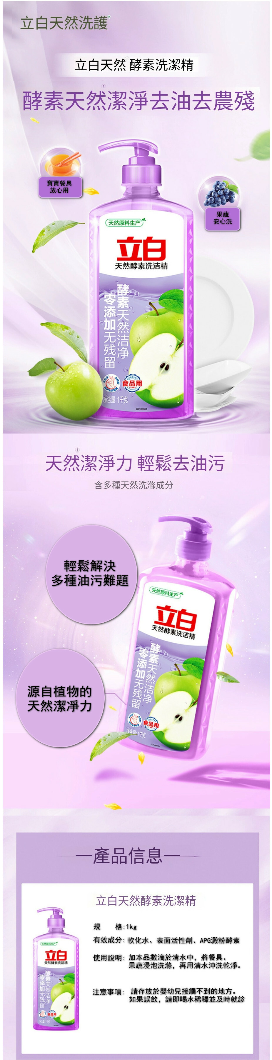 (立白)天然酵素洗潔精去油農殘寶寶餐具無殘留【1kg*2瓶】
