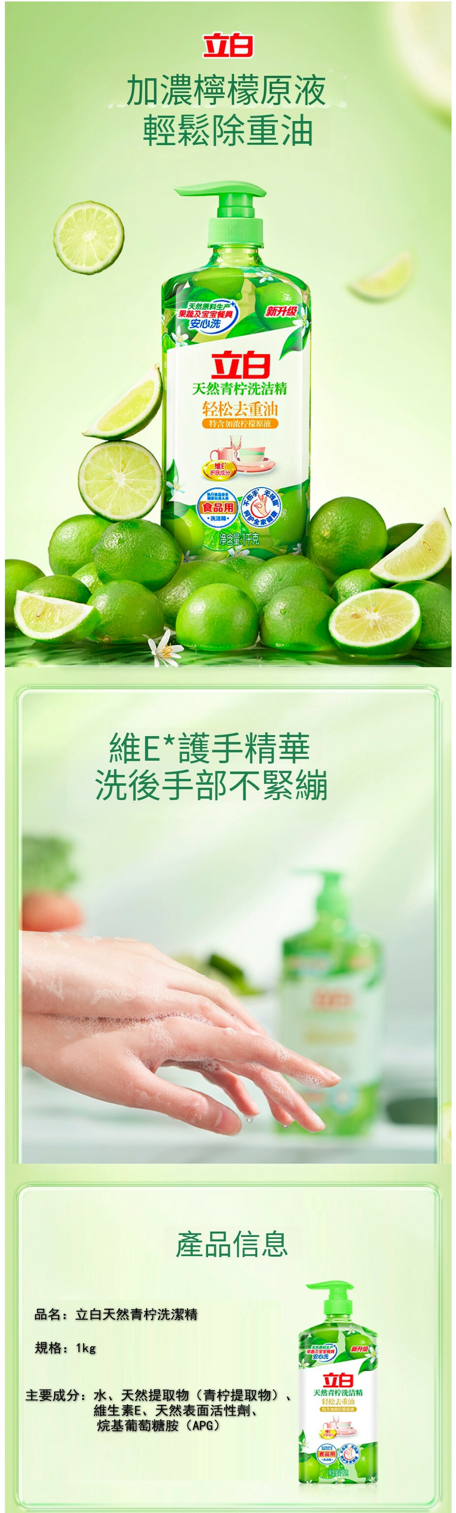 (立白)洗潔精家用級清新去异味【天然青檸精1kg*2瓶】