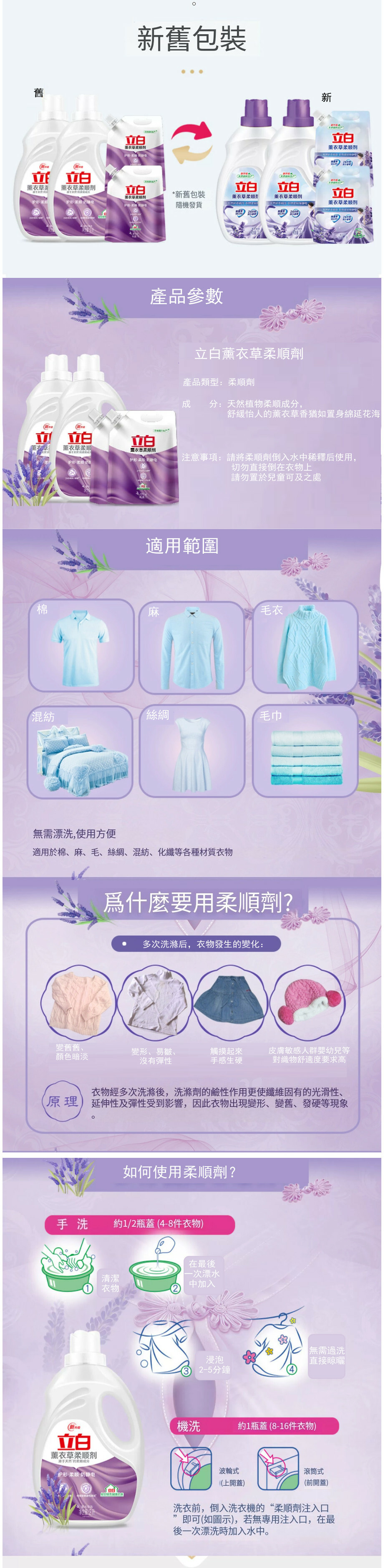 (立白)薰衣草--柔順劑--衣物護理留香防靜電【2L 新舊包裝隨機發貨】