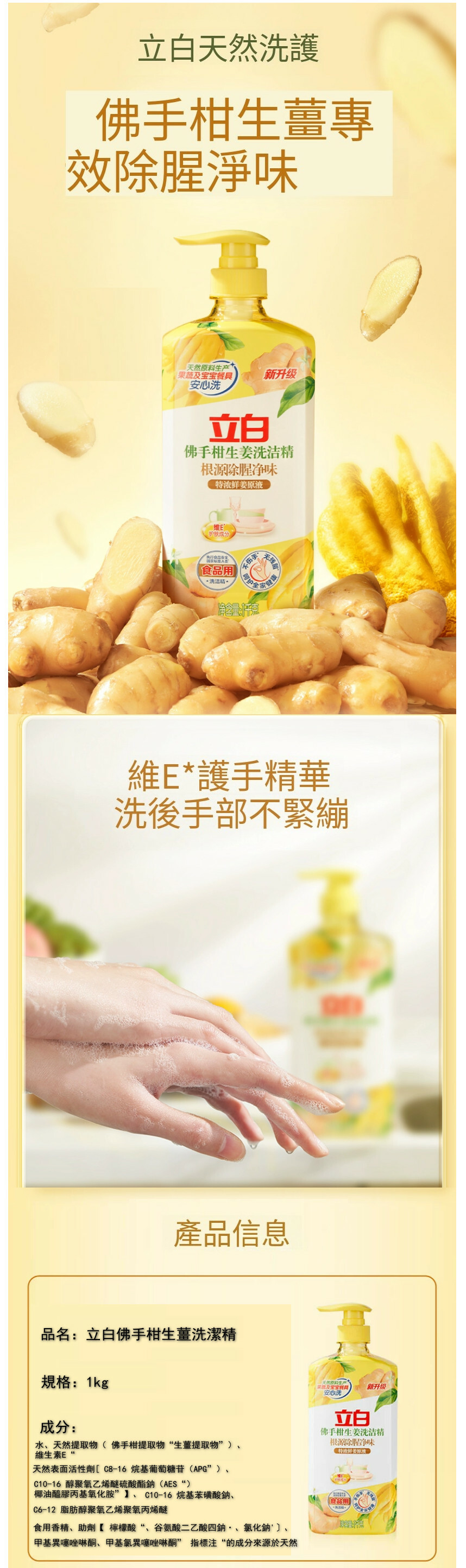 (立白)洗潔精家用級清新去异味【佛手柑生薑洗潔精1kg*2瓶】