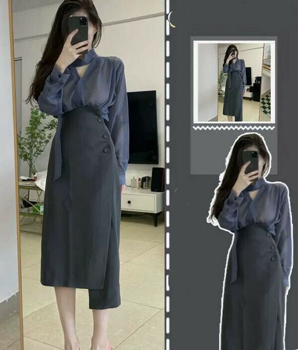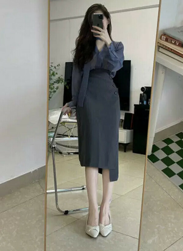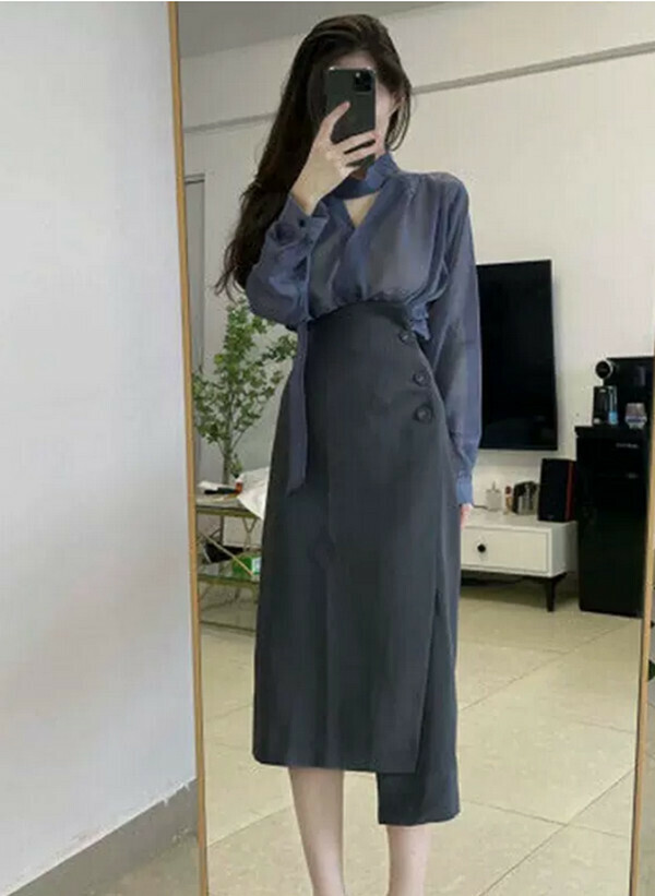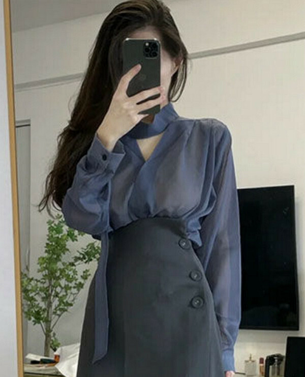 爆款輕熟風鏤空長袖襯衫#單件(灰色)(M-4XL碼) (下單後聯系客服確認尺碼)