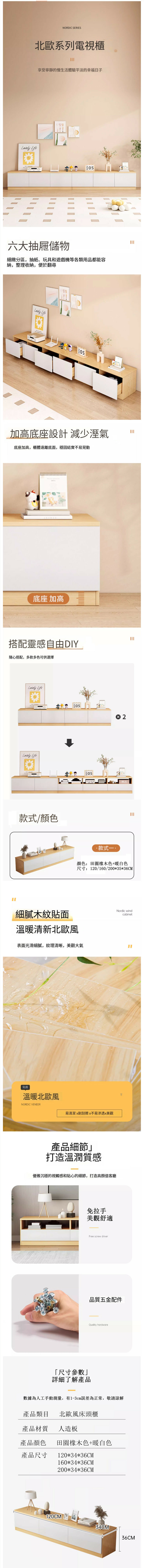 客廳電視櫃--落地式儲物櫃,臥室收納櫃【1.2米 橡木色+暖白】1件