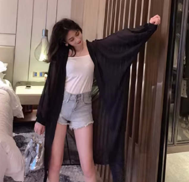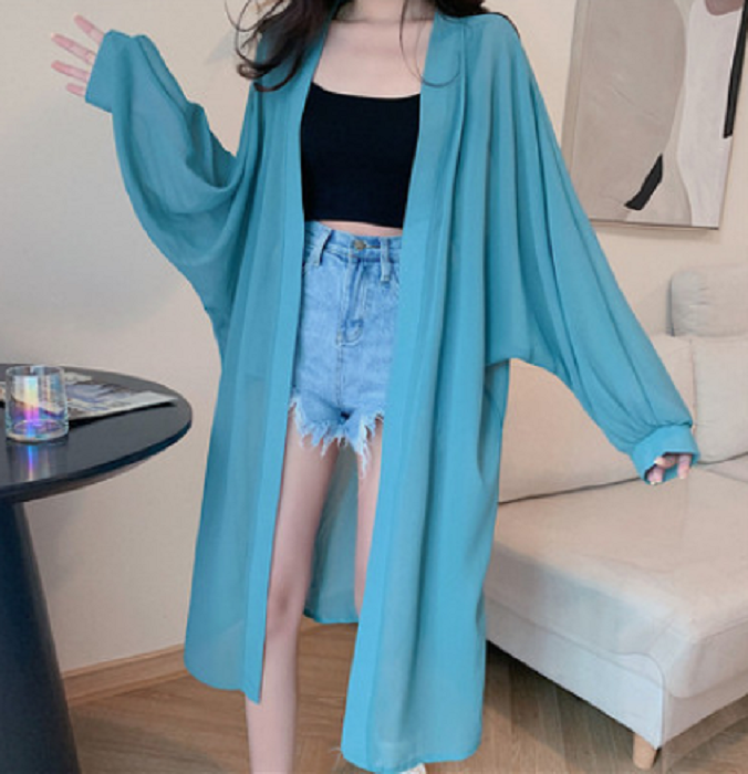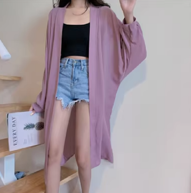熱推長款雪紡開衫外套(紫色)(尺碼:均碼)】