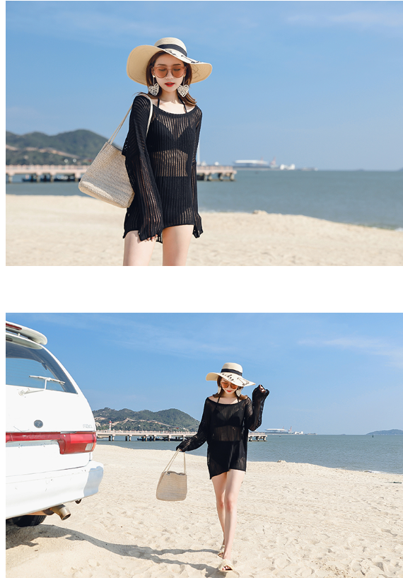 熱推長袖比基尼罩衫泳衣外套(黑色)(均碼)