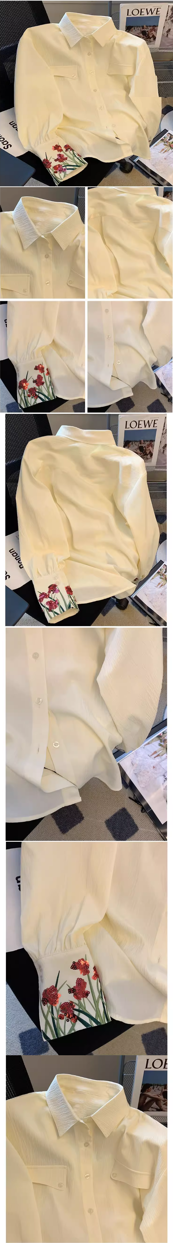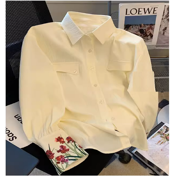 爆款長袖繡花襯衫(杏色 尺碼:S-3XL)(下單後請聯絡客服確認發貨尺碼)