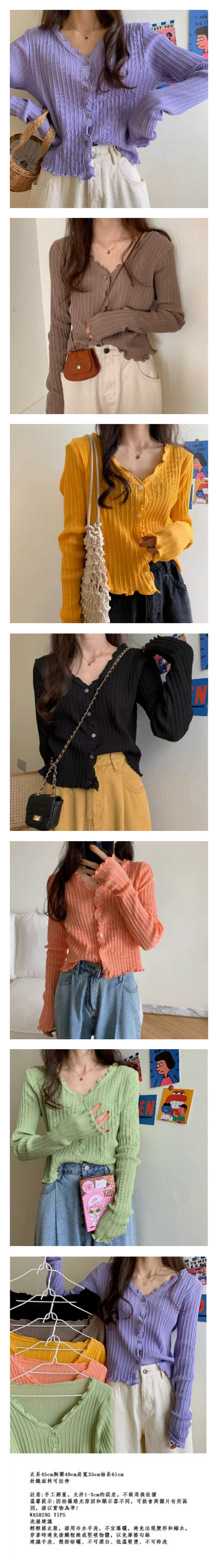 熱賣長袖針織衫修身小開衫V領休閑短款(黑色)( 尺碼:均碼)