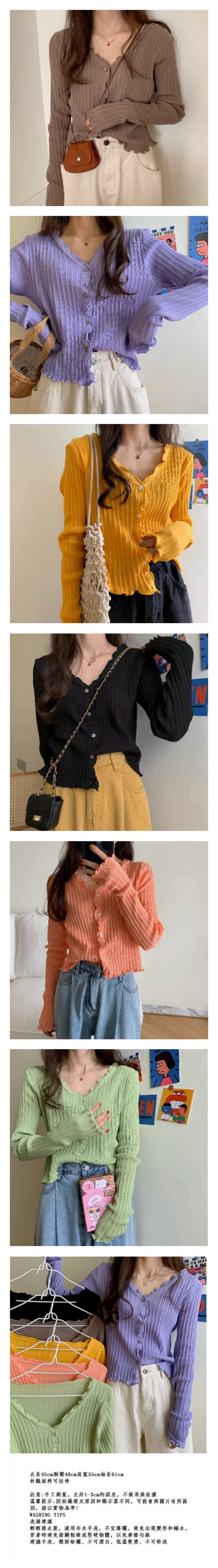 熱賣長袖針織衫修身小開衫V領休閑短款(紫色)( 尺碼:均碼)