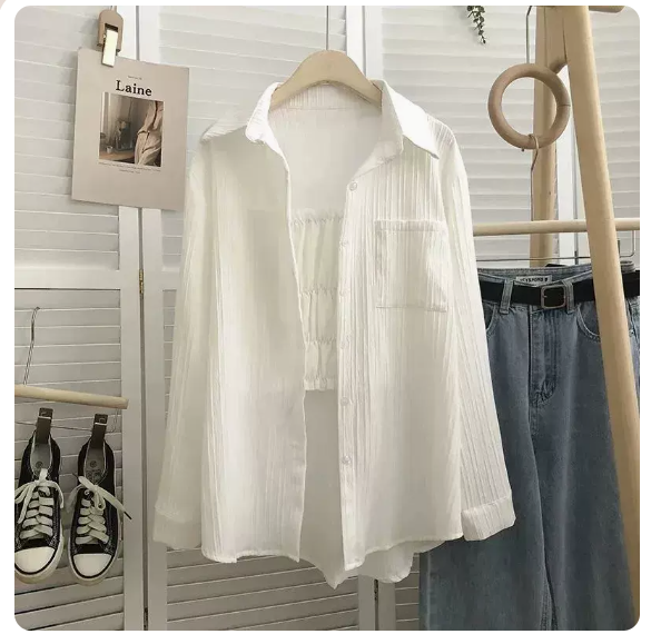 熱賣長袖紋理襯衫外套(白色 尺碼:S-3XL)(下單後請聯絡客服確認發貨尺碼)