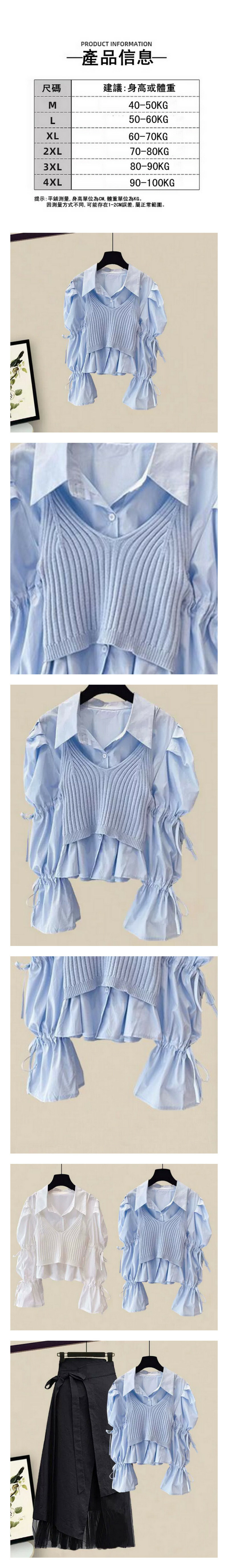 熱賣長袖上衣+時尚馬甲#單件(藍色)(M-4XL碼) (下單後聯系客服確認尺碼)