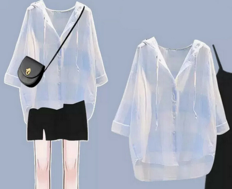 熱推寬松顯瘦防曬襯衫(藍色)(M-4XL碼) (下單後聯系客服確認尺碼)