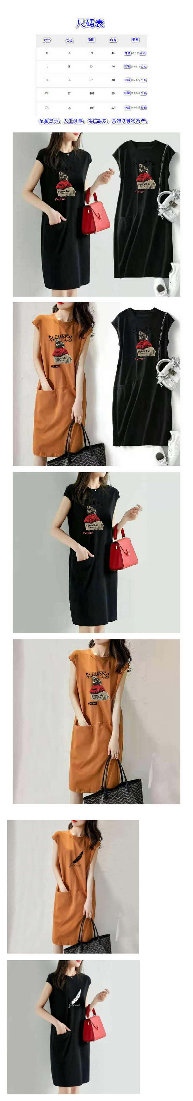 新款寬鬆顯瘦T卹連衣裙【301018卡其頭像】 (M-3XL碼) (下單後聯繫客服確認尺碼)