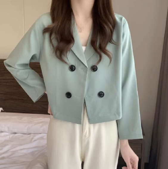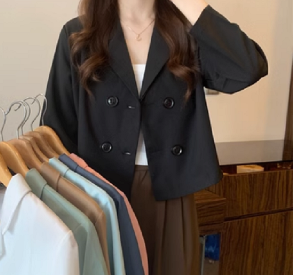 新款寬松休閑短款西服外套(黑色)(尺碼:均碼)】