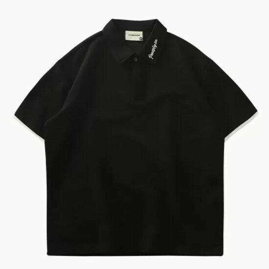 激抵寬鬆休閑翻領短袖T恤(S-2XL 黑色)(下單後聯絡客服確認發貨尺碼)