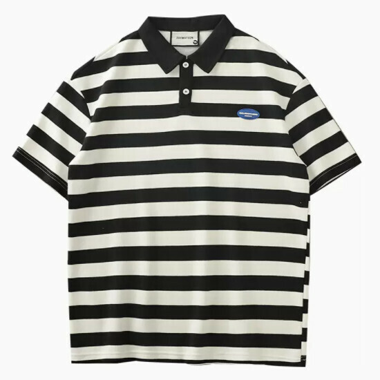 激抵寬鬆休閑翻領短袖T恤(S-2XL 黑色)(下單後聯絡客服確認發貨尺碼)