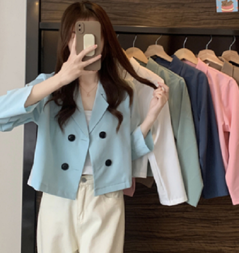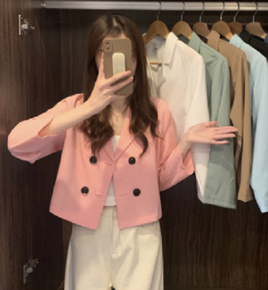 熱賣寬松休閑短款西服外套(綠色)(尺碼:均碼)】