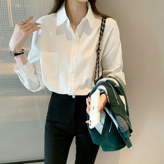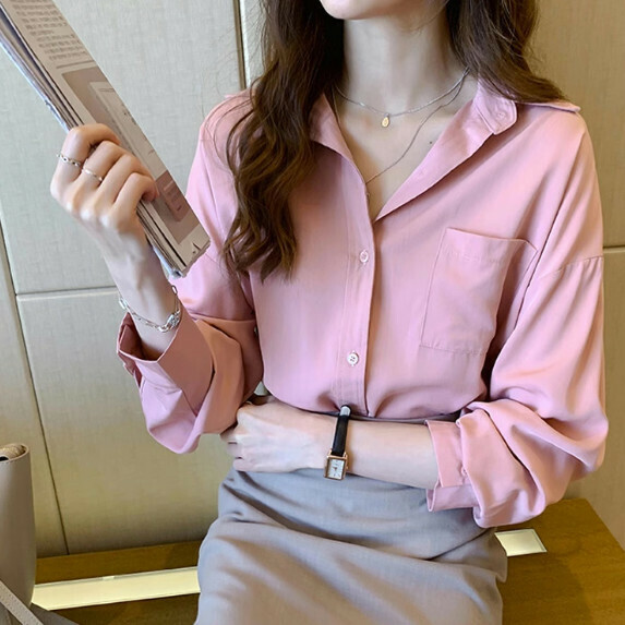 爆款寬鬆長袖襯衫女春裝(粉色【S_L碼】(下單後聯繫客服確認發貨尺碼)】