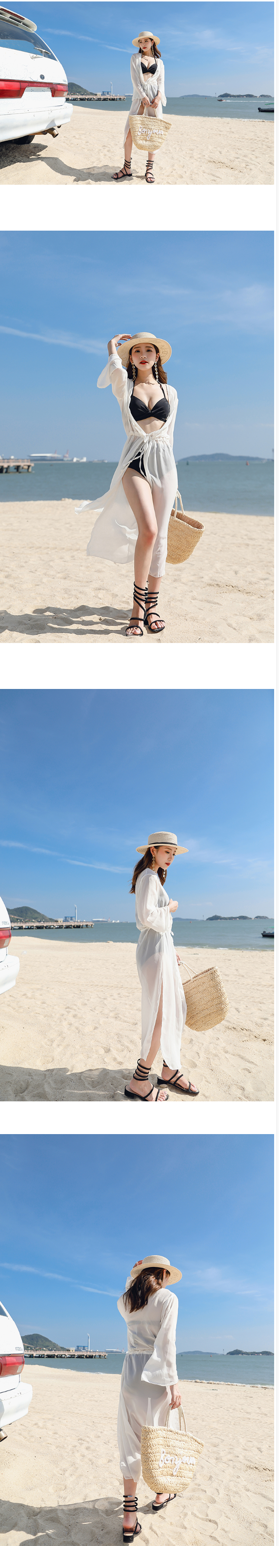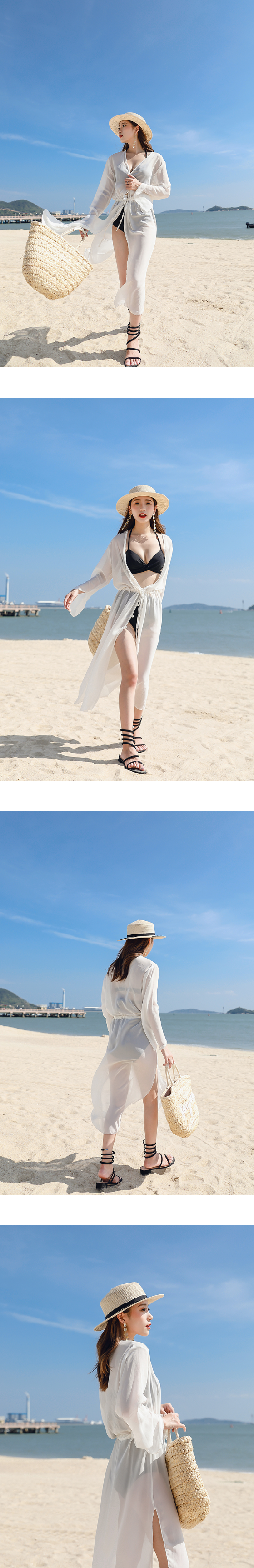熱推寬松中長款雪紡開衫外套(白色)(均碼)