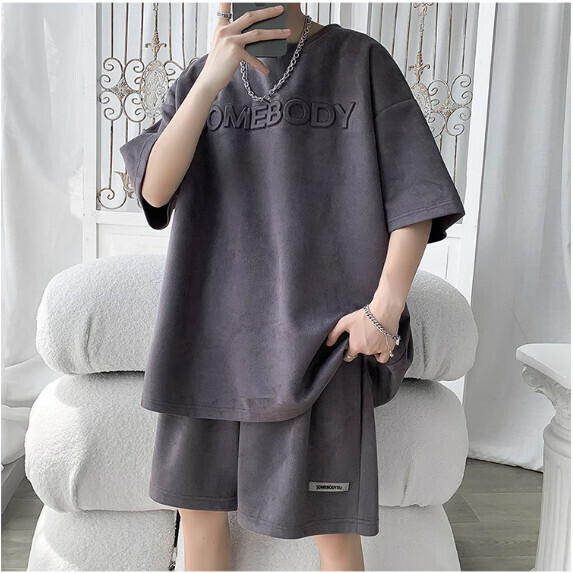 新款寬鬆短袖T恤短褲男夏季(杏色【M_2XL碼】(下單後聯繫客服確認發貨尺碼)