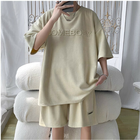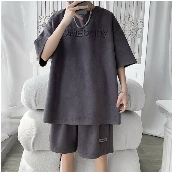 新款寬鬆短袖T恤短褲男夏季(黑色【M_5XL碼】(下單後聯繫客服確認發貨尺碼)