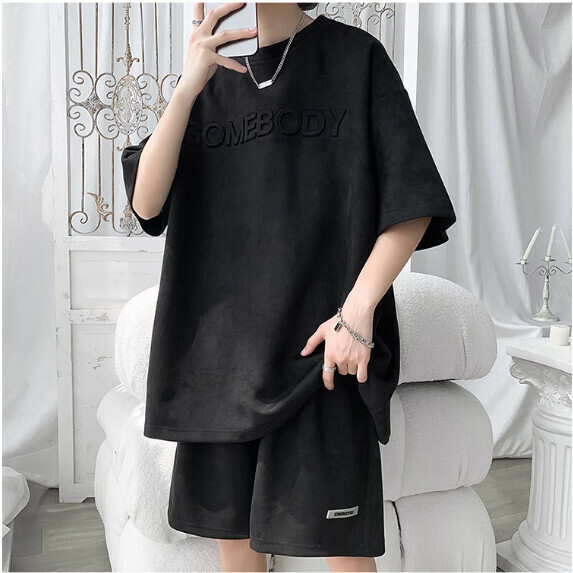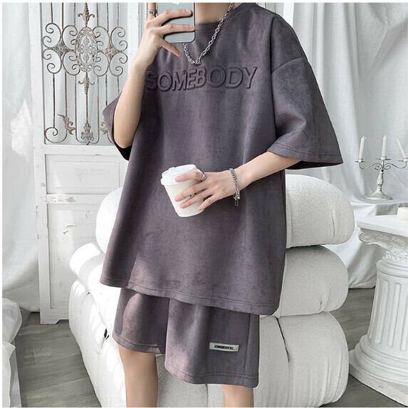 新款寬鬆短袖T恤短褲男夏季(灰色【M_5XL碼】(下單後聯繫客服確認發貨尺碼)