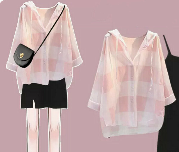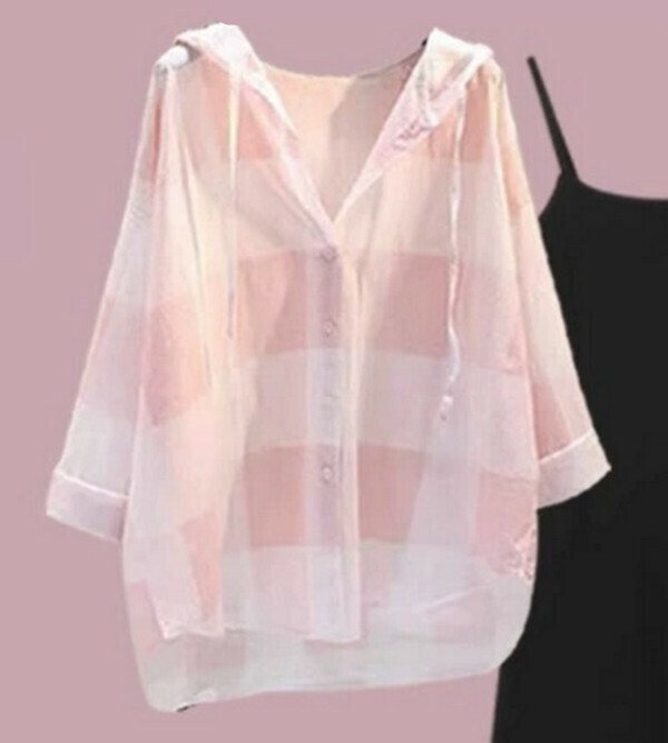 熱推寬松顯瘦防曬襯衫(粉色)(M-4XL碼) (下單後聯系客服確認尺碼)