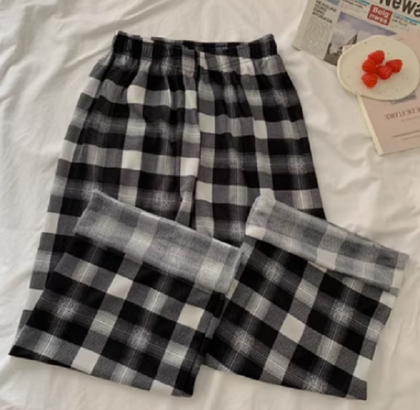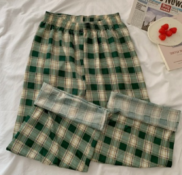 爆款寬松直筒褲高腰闊腿褲(綠格)(尺碼:M-L)(下單後聯絡客服確認發貨尺碼)】