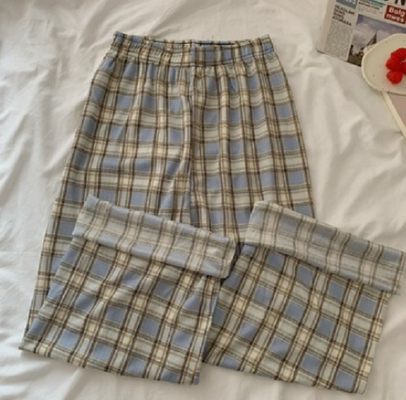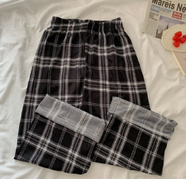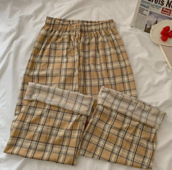 爆款寬松直筒褲高腰闊腿褲(咖格)(尺碼:M-L)(下單後聯絡客服確認發貨尺碼)】