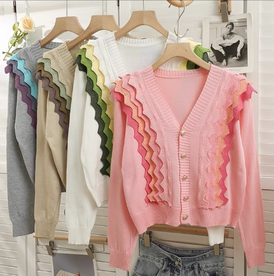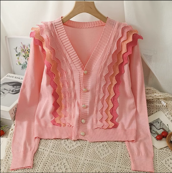 波浪邊低領薄款針織衫