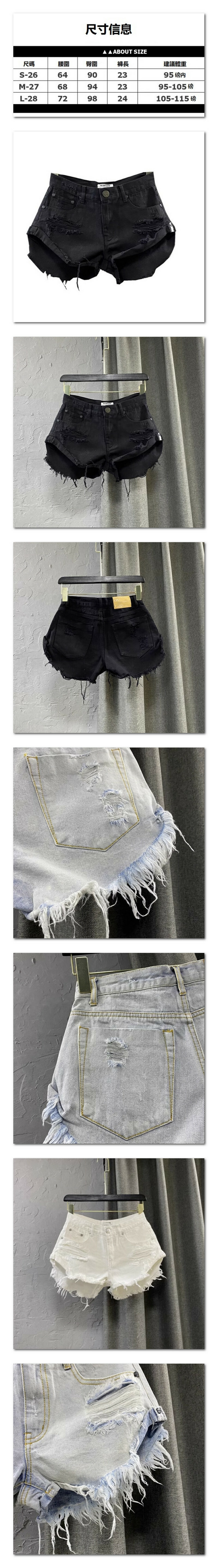 新款低腰牛仔破洞闊腿短褲女夏裝(深藍色【S_L碼】(下單後聯繫客服確認發貨尺碼)】