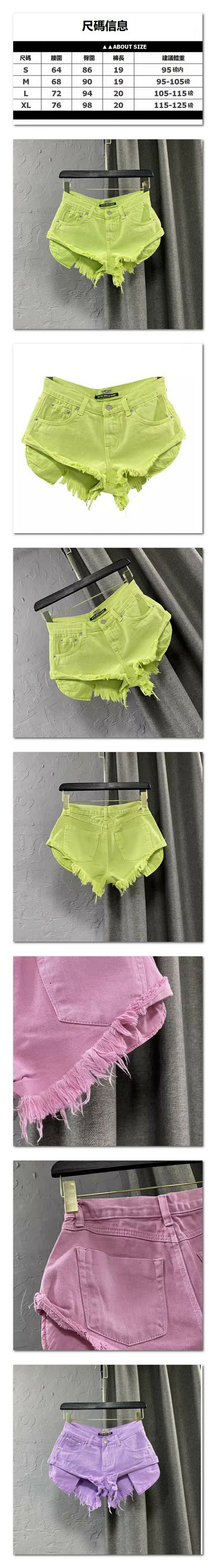 激抵低腰牛仔闊腿短褲女夏裝(黃綠色【S_XL碼】(下單後聯繫客服確認發貨尺碼)】