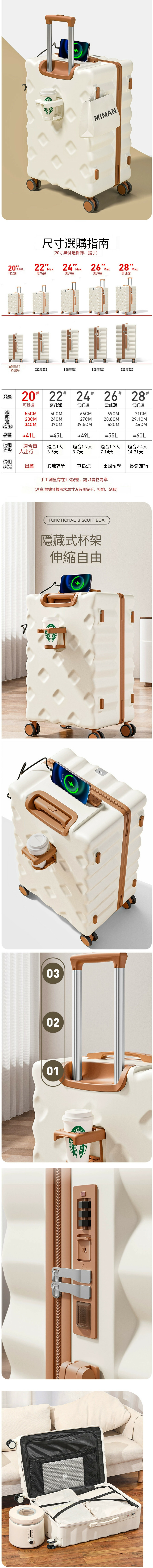 行李箱旅行拉杆箱20吋(無側提)-奶白色 (菱形暗花款)拉鍊款