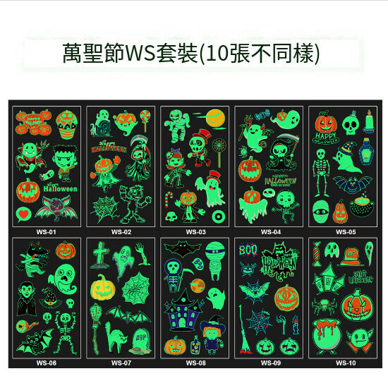 熱推夜光萬聖節紋身貼發光貼紙(夜光萬聖節WS系列)