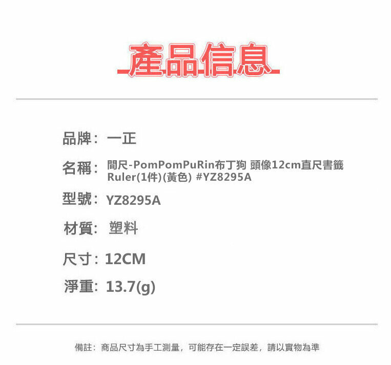 熱推間尺-PomPomPuRin布丁狗 頭像12cm直尺書籤Ruler(1件)(黃色)