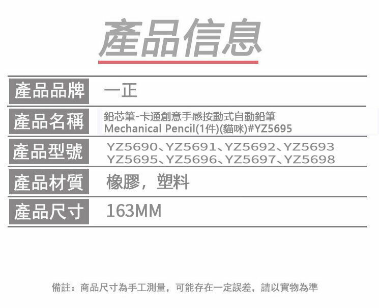 熱賣鉛芯筆-卡通創意手感按動式自動鉛筆 Mechanical Pencil(1件)(貓咪)