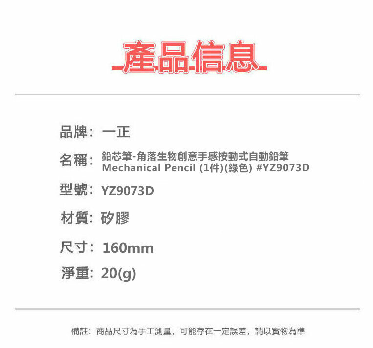 新款鉛芯筆-角落生物創意手感按動式自動鉛筆 Mechanical Pencil (1件)(綠色)
