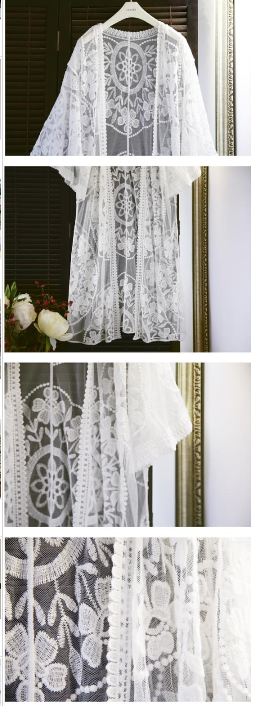 熱推中長款寬松鏤空蕾絲開衫薄外套(白色)(均碼)