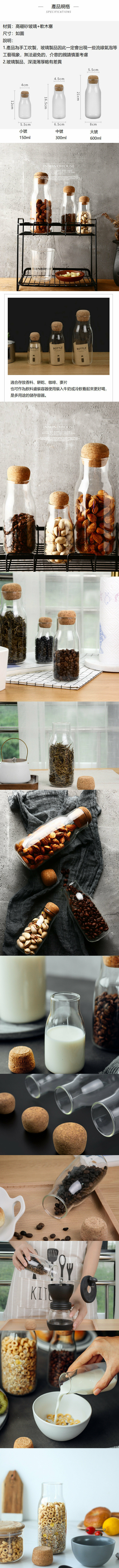 熱推[中號/300ml] (單個裝) 密封罐 玻璃透明茶葉罐 木塞咖啡瓶 收納瓶 收納罐 收納樽