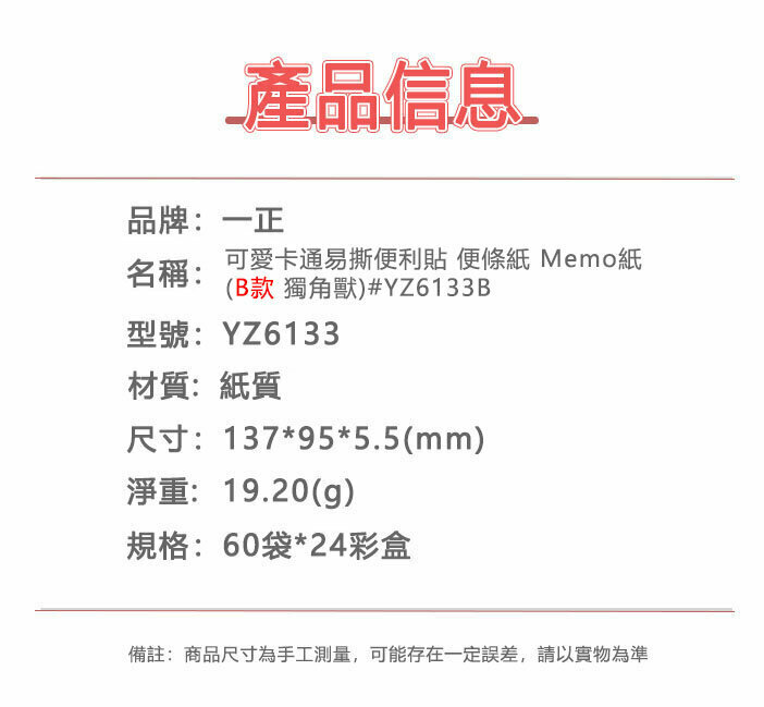 熱賣Memo紙-可愛卡通易撕便利貼 便條紙 (B款 獨角獸)